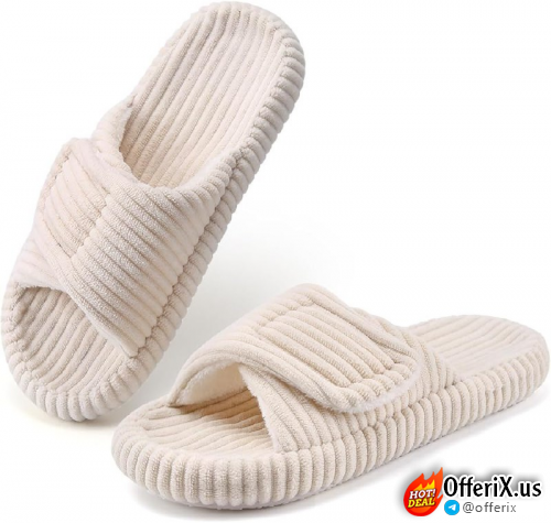 🇺🇸🇺🇸$11.xx Womens Open Toe Slippers with Arch Support,Corduroy Indoor HoUse Slippersjustable Comfort Bedroom Shoes Size 5-12